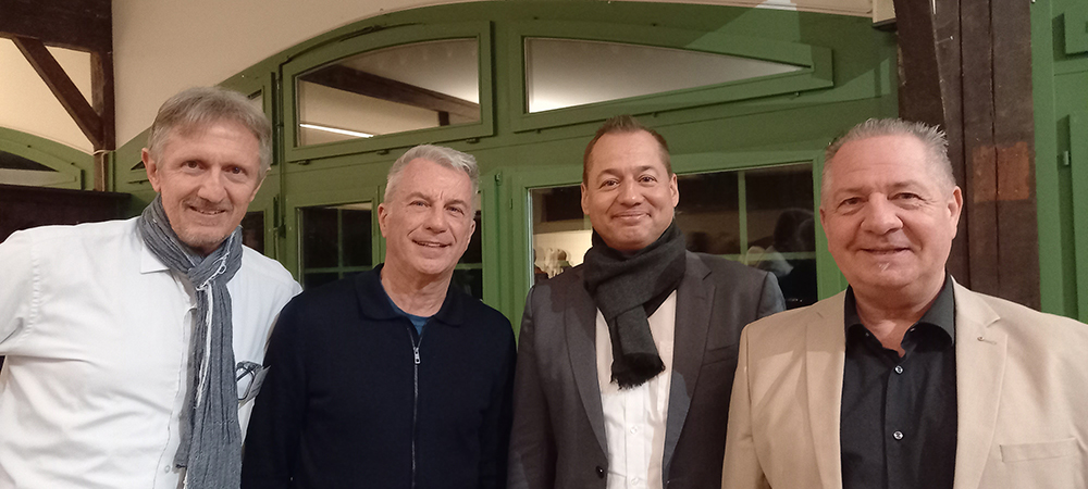 Repräsentanten des Hauptsponsors Bank Thalwil mit TV-Prominenz. Von links: Andreas Krattiger, Reto Lipp, Ralf Rieser und Beat Ruch.
