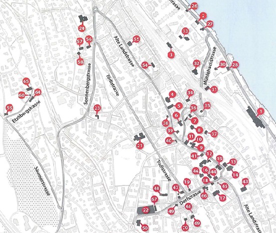 Die QR-Codes auf den Beschriftungstafeln enthalten die Texte des Neujahrsblattes 2016 zu den Schutzobjekten. Es sind 20 ausführlichere Texte sowie etwas kürzer gefasste Informationen. Selbstverständlich dient auch das Neujahrsblatt als Begleiter für einen Rundgang. Nehmen Sie sich doch ab und zu Zeit für einen Spaziergang durch Thalwil. Es lohnt sich!